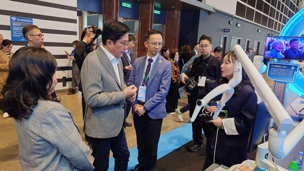 展会期间,小济医生展位迎来了一位重磅嘉宾——香港特别行政区财政司副司长黄伟纶先生。